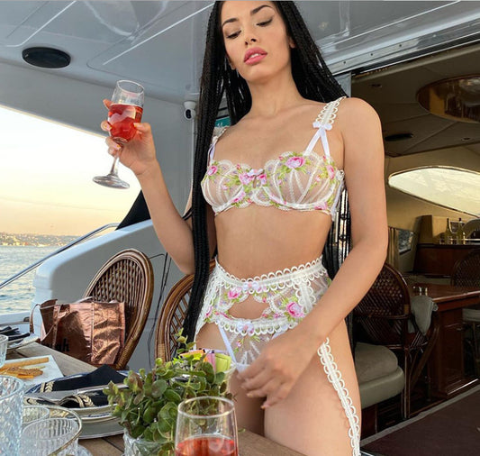 Cute Girly Embroidered Net Yarn Sexy Lingerie Set