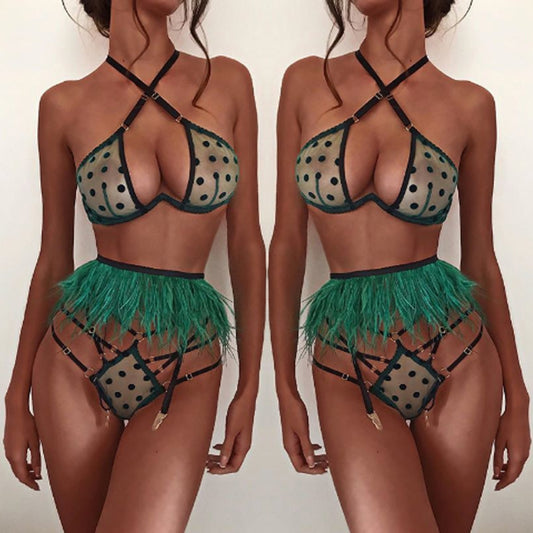 Feather Sexy Lingerie Lace Women Underwear Bra Panty
