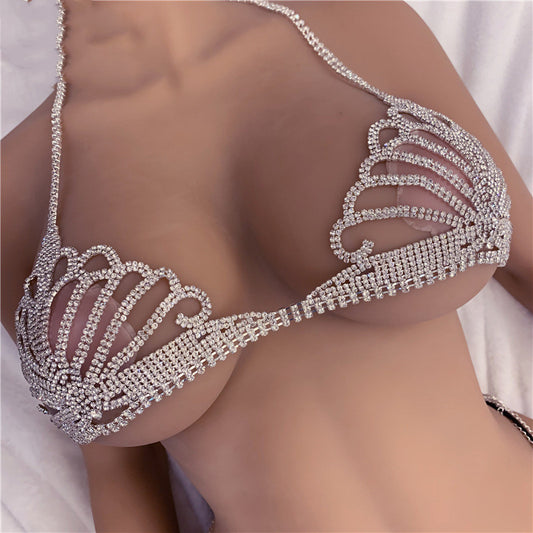 Rhinestone Claw Chain Body Chain Set Sexy Bra Panty Set Lingerie Show