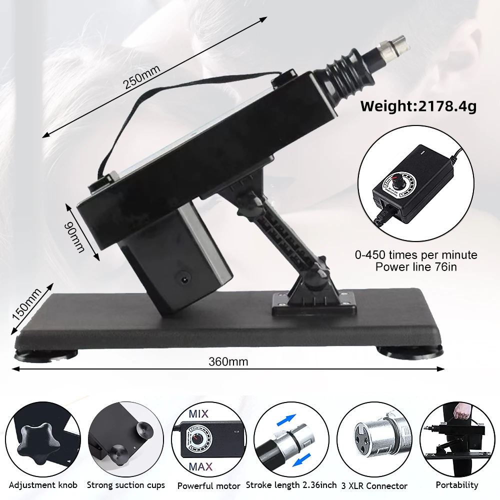 The sex machine is a very cost-effective professional machine that has many quality components and features. The machine speed is adjustable from 0-450 times per minute via a handheld remote. Turn the dial a little and this machine moves a little faster or slower, you are in control. This gives you the ability to find the speed that suites your taste for maximum pleasure. The sex machine is very versatile and can be used either by the male or female user alike.