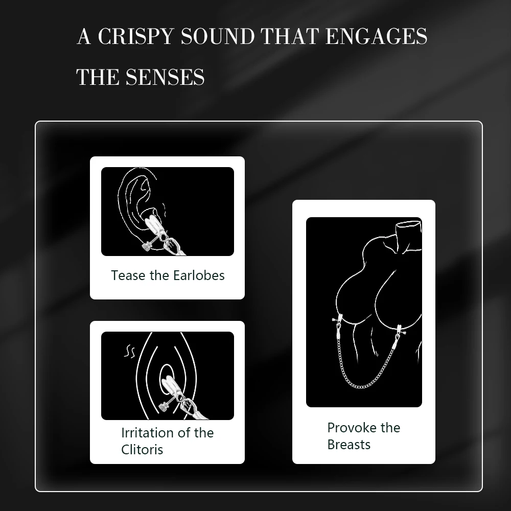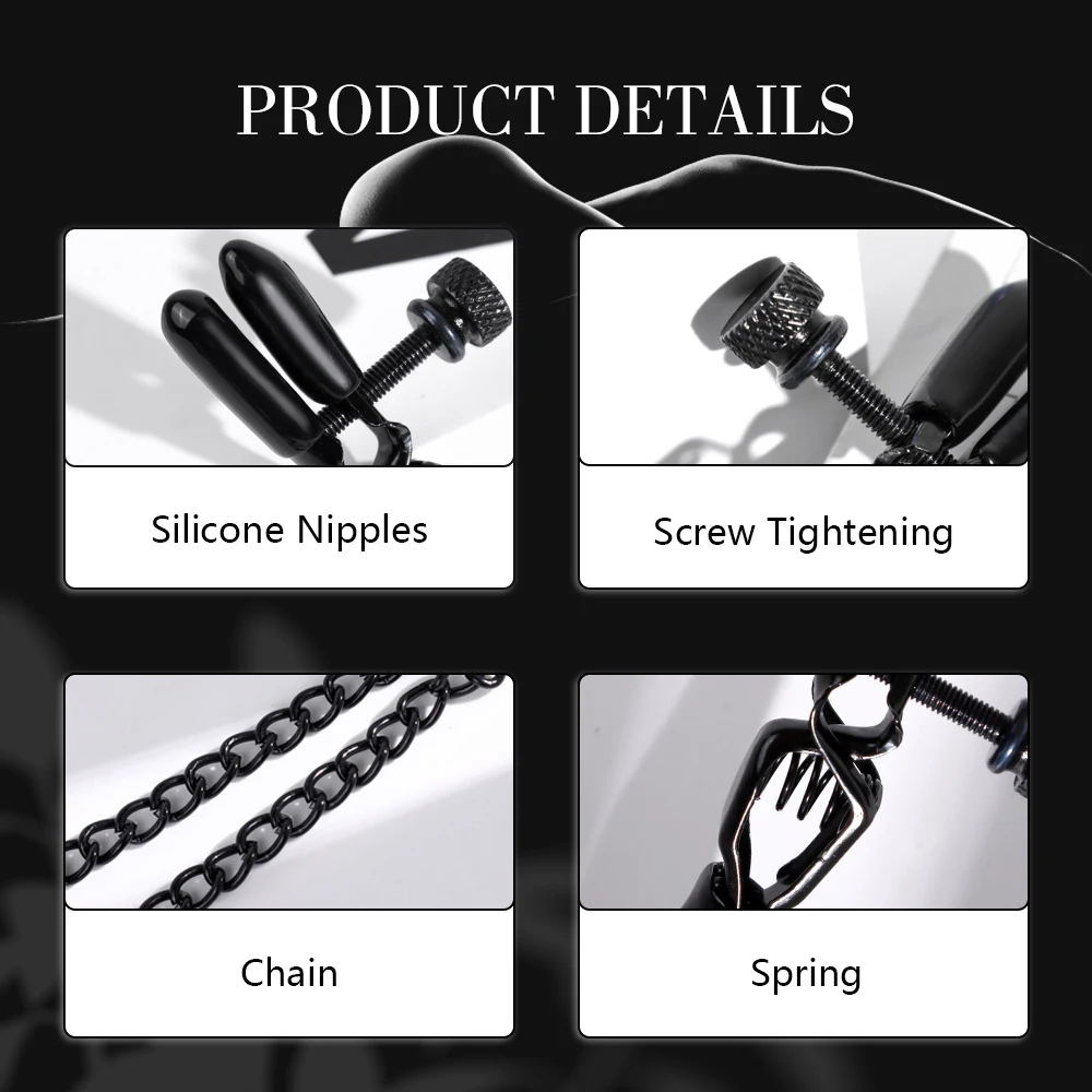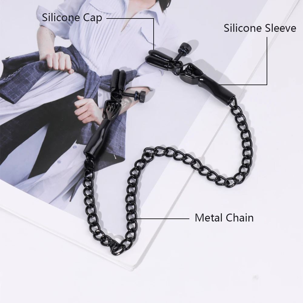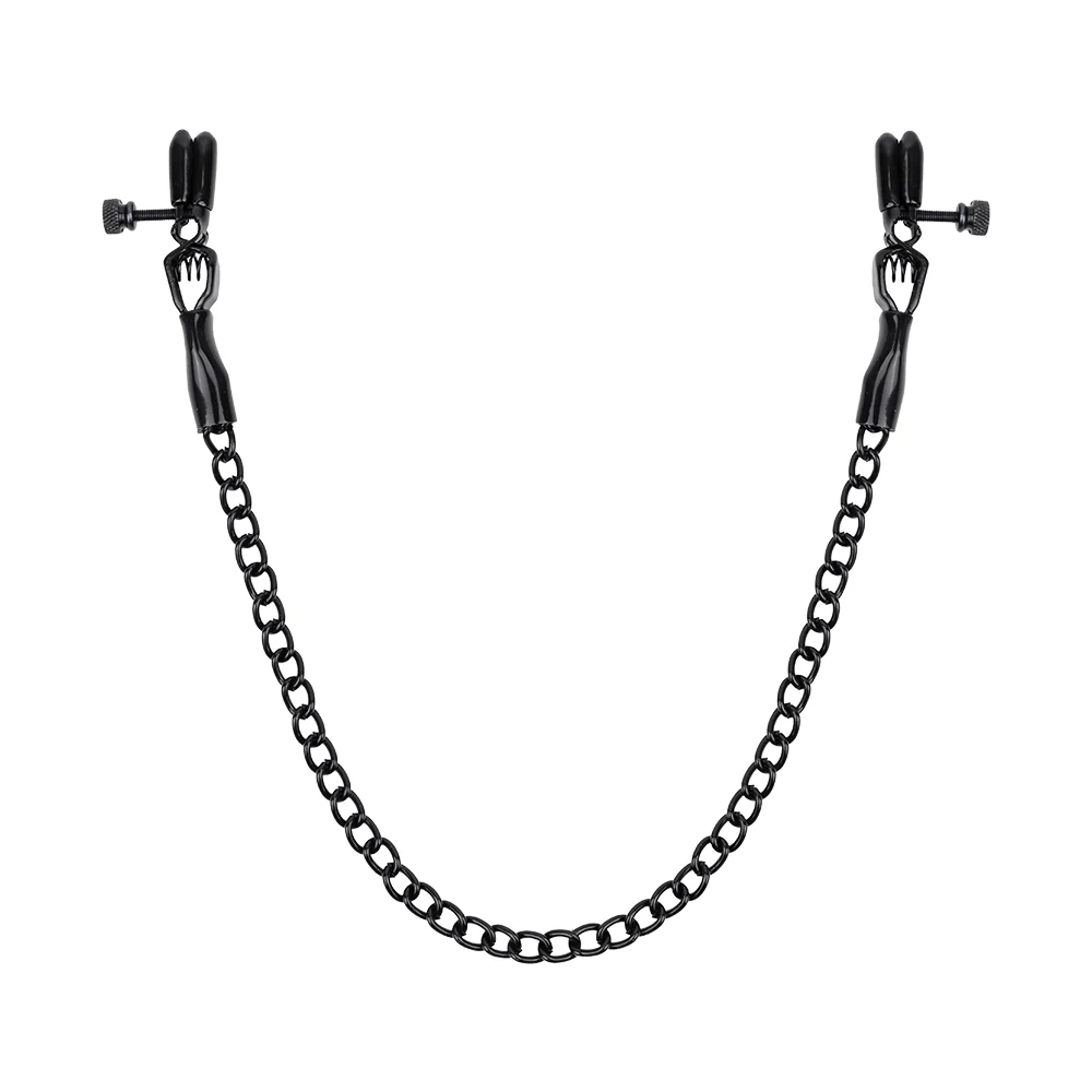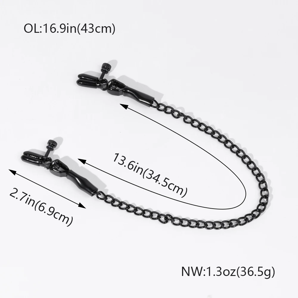 Black Nipple Clamps with Chain Adjustable Metal Breast Clips