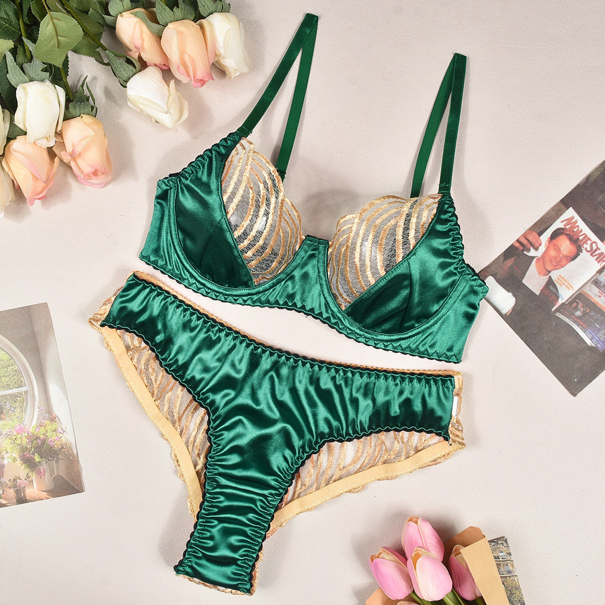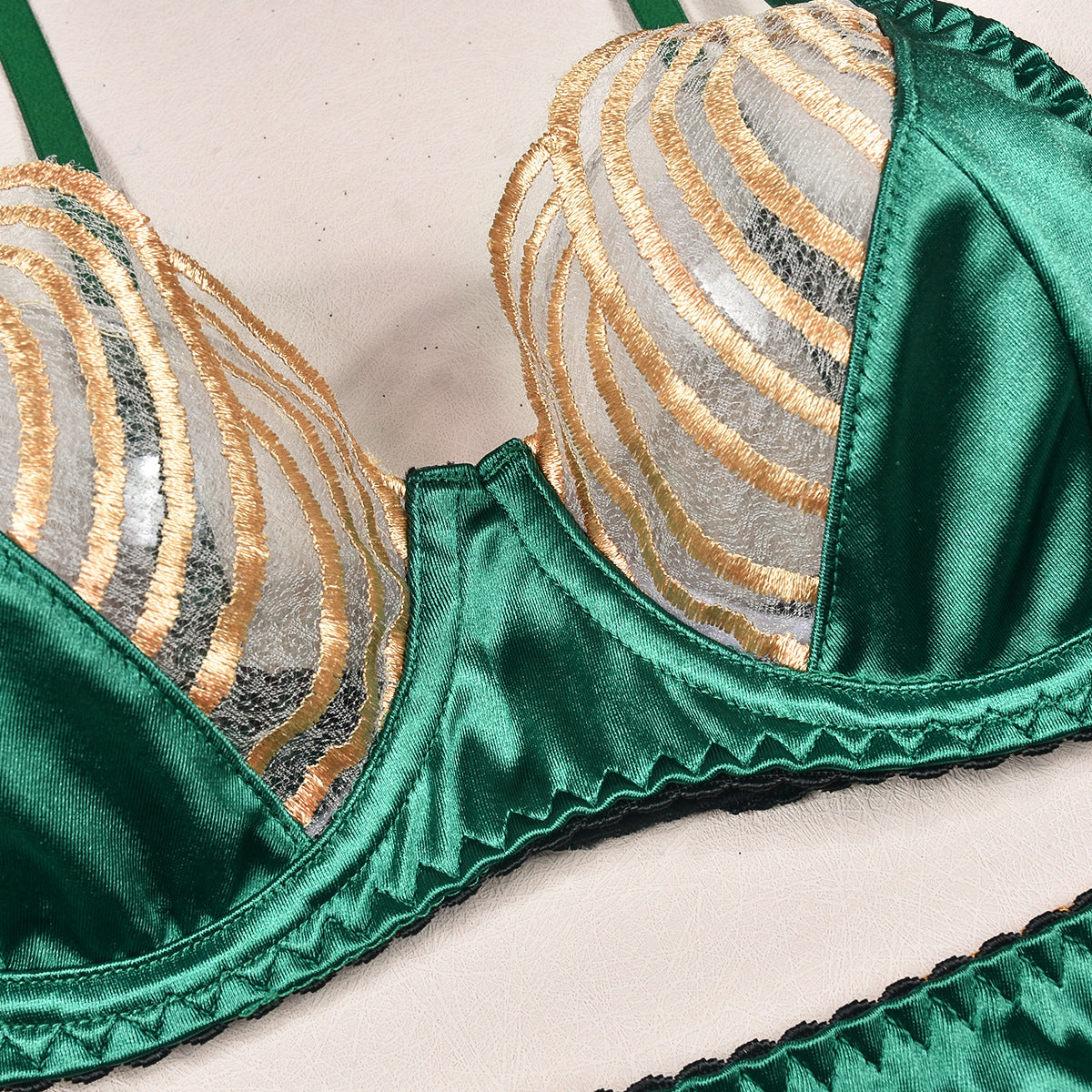 Women's Fashion Satin Embroidery Stitching Pajamas Suit