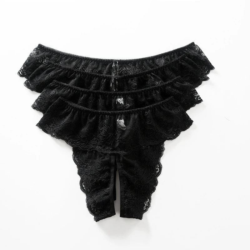 Plus Size Underwear Women Sexy Open Crotch Panties Lace Transparent Thongs For Sex Lingerie Nightwear